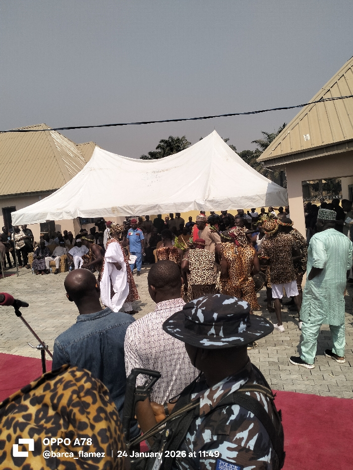 An outdoor gathering is depicted in Akwanga, Nigeria, on 24 January 2026, at approximately 11:49