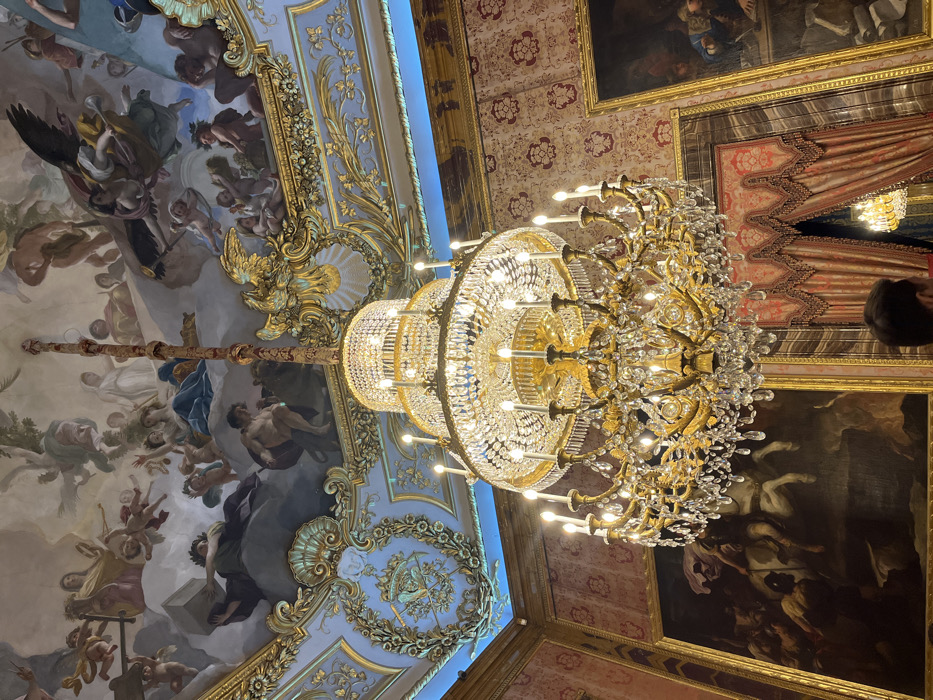 - "A large, ornate, multi-tiered chandelier dominates the center of a lavish room within the Royal Palace of Madrid, Spain" by FM-0EuNd2, licensed under CC BY 4.0