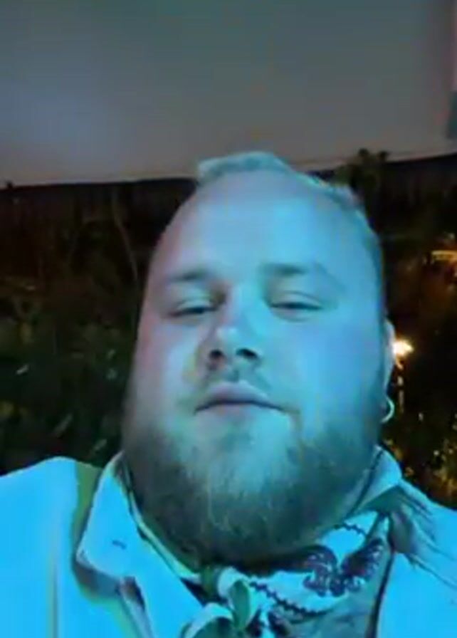 A video depicts a man with short, blond hair, a beard, and fair skin, looking directly into the camera