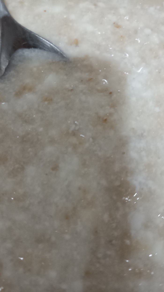 - "The image displays a close-up, top-down view of a light beige, semi-liquid food substance, consistent with porridge or gruel, observed in Sagunto, Spain" by FM-BdCXB3, licensed under CC BY 4.0