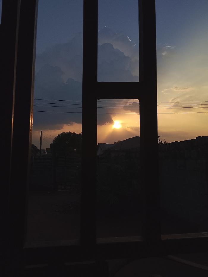 - "The image depicts an outdoor landscape observed through a dark, structural frame, likely a window grille or gate, in Lafia, Nigeria, during either sunrise or sunset" by FM-HKTqo1, licensed under CC BY 4.0