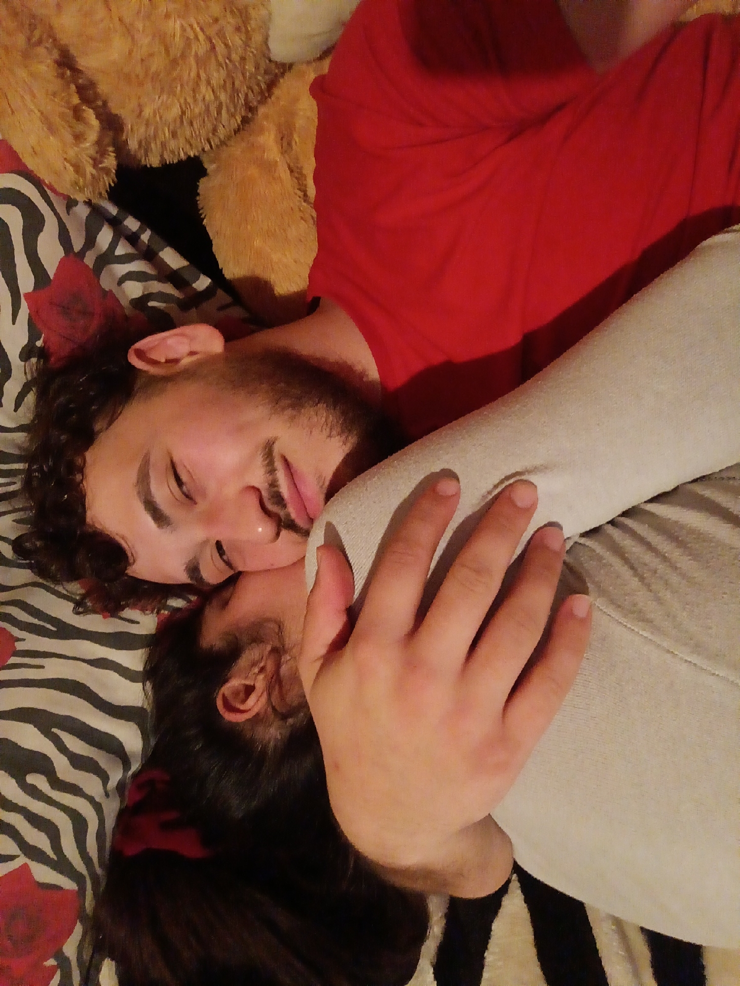 - "Two individuals, one male and one female, are depicted in an embrace within an indoor setting, likely a bedroom" by FM-hAFnk2, licensed under CC BY 4.0
