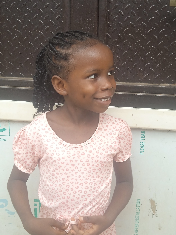 A young Black girl, approximately 5-8 years old, is depicted in a close-up, chest-up portrait
