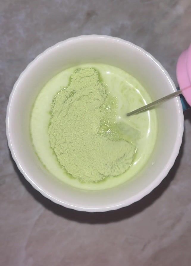 - "white mug filled with a light green liquid and a mound of green powder on top" by FM-0aB0p1, licensed under CC BY 4.0