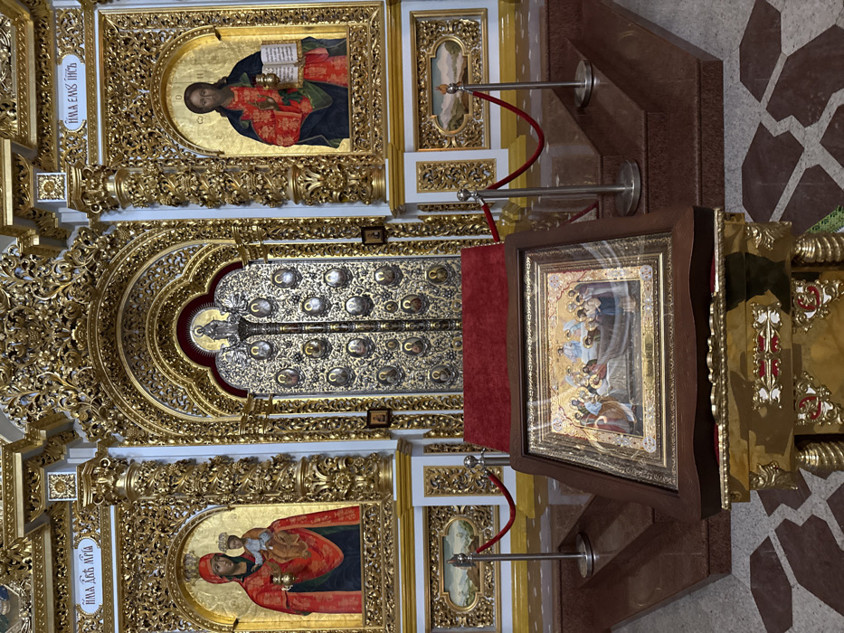 The image depicts the elaborate iconostasis inside Saint Michael's Golden-Domed Monastery in Kyiv, Ukraine