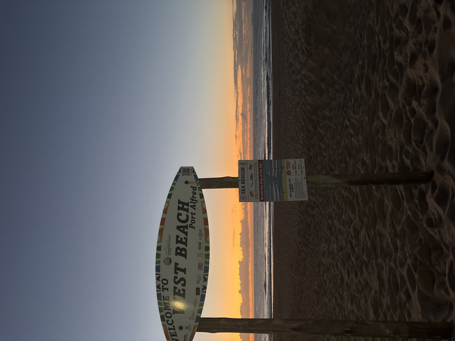 - "A beach scene at dawn or dusk shows a sign indicating "WELCOME TO WEST BEACH, Port Alfred" with "SUNSHINE COAST" also prominently displayed" by FM-4ddg82, licensed under CC BY 4.0