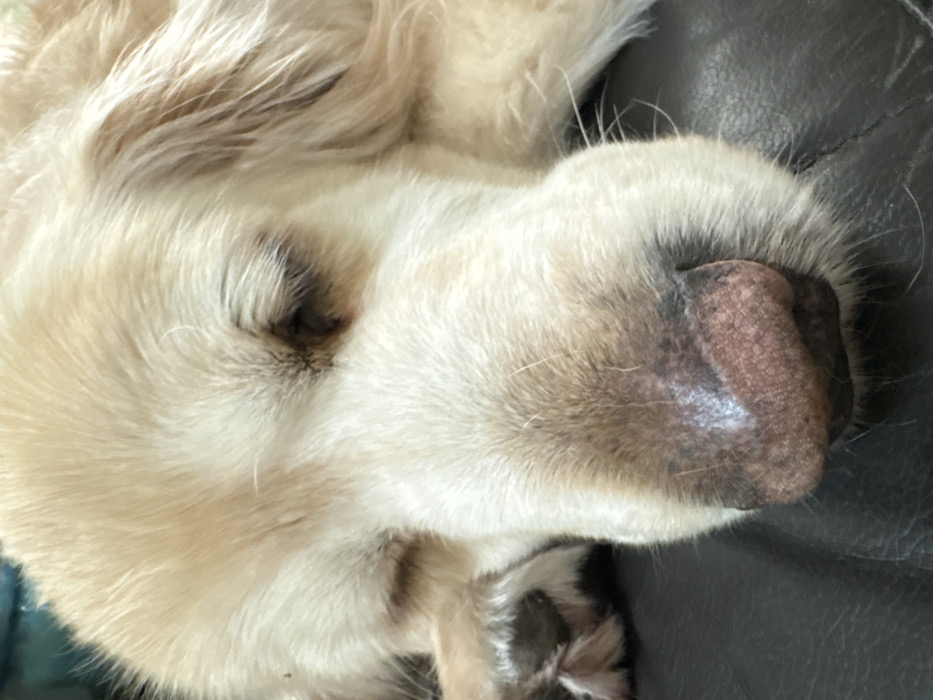 - "A light-colored dog, consistent with a Golden Retriever breed, is depicted in a close-up, sleeping" by FM-wE9nL2, licensed under CC BY 4.0
