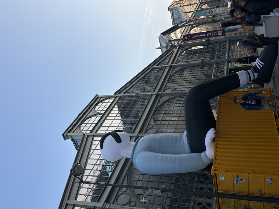 - "An outdoor scene in Paris, France, depicts a colossal inflatable humanoid sculpture positioned in front of the historic Halle des Blancs Manteaux in the Marais district" by FM-PvR643, licensed under CC BY 4.0