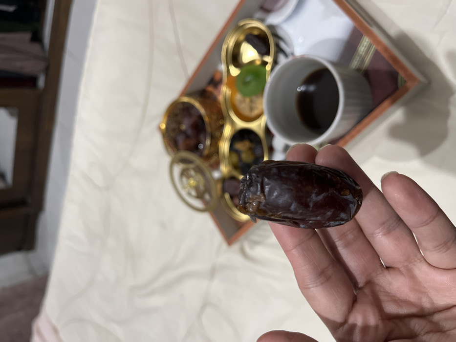 - "The image depicts a close-up indoor scene in Nuseirat, Palestinian Territory, focusing on a human hand holding a date" by FM-SlpZu2, licensed under CC BY 4.0