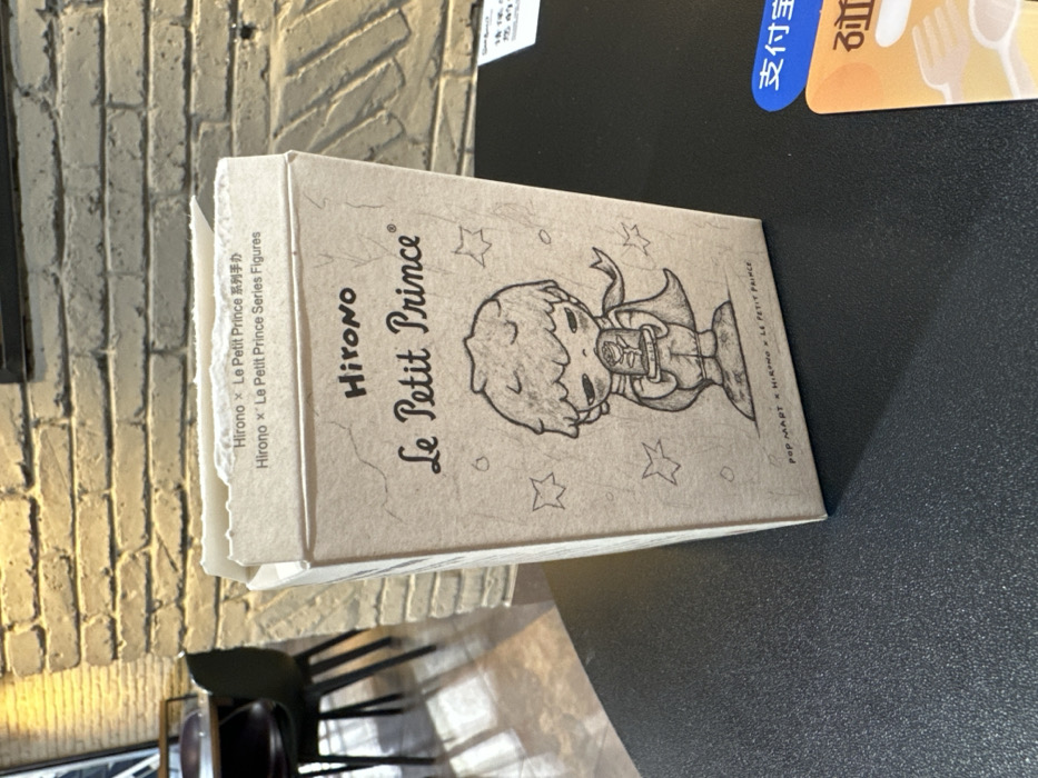 - "A light beige, rectangular cardboard box for a "Hirono x Le Petit Prince Series Figures" collectible is positioned upright on a dark, textured tabletop in an indoor commercial setting within Pudong, China" by FM-2Bjlr1, licensed under CC BY 4.0