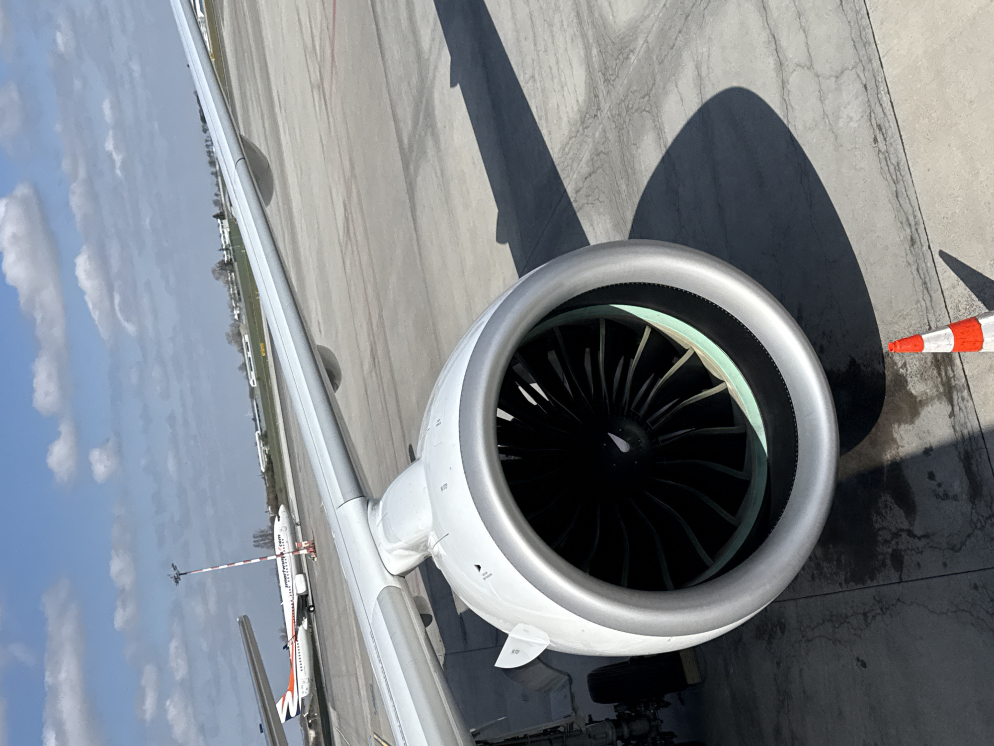 - "The image displays a close-up, ground-level perspective of a large passenger aircraft's engine and wing on a concrete tarmac at Václav Havel Airport Prague (PRG) in Prague, Czechia" by FM-toXsi1, licensed under CC BY 4.0