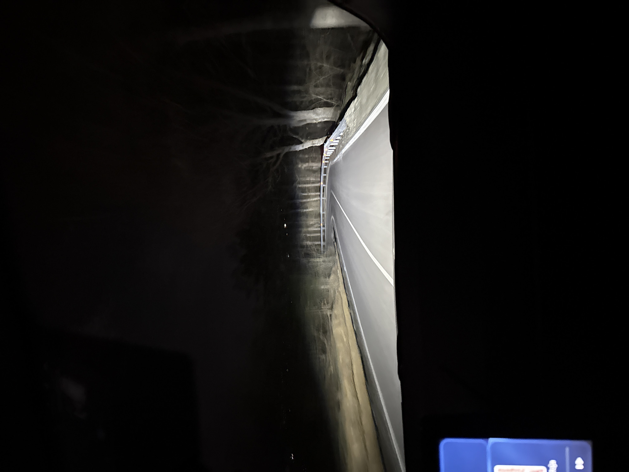 - "The image depicts a nighttime scene from inside a moving vehicle, looking forward through the windshield" by FM-hItD02, licensed under CC BY 4.0