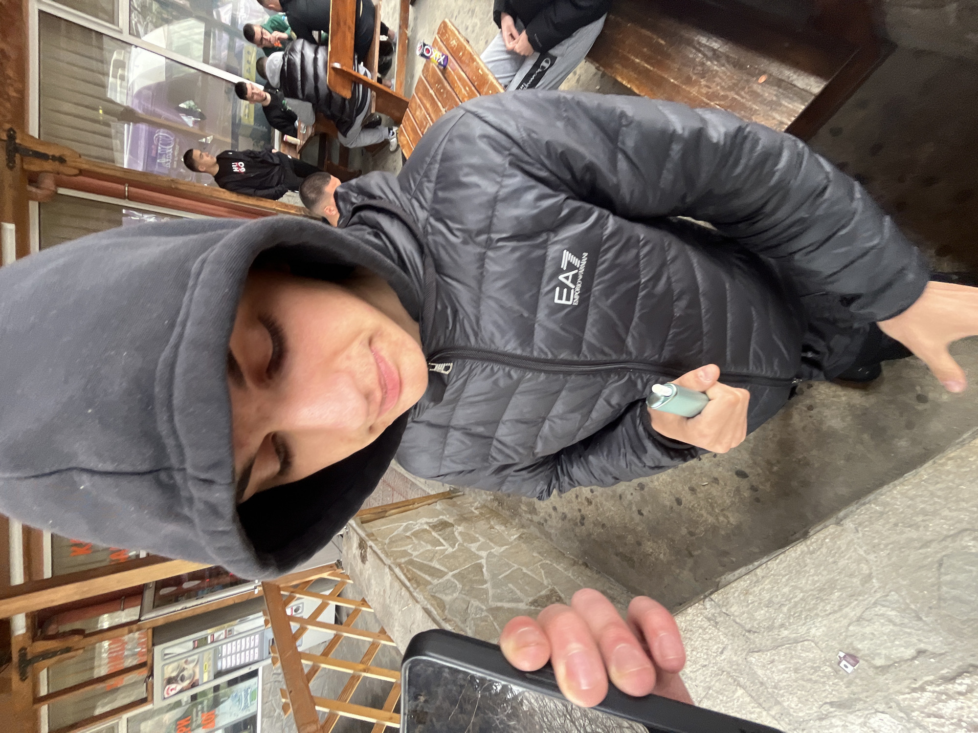 - "The image displays a young male in the foreground, wearing a black hooded puffer jacket featuring an "EA7 Emporio Armani" logo on the left chest" by FM-Ij9bc2, licensed under CC BY 4.0