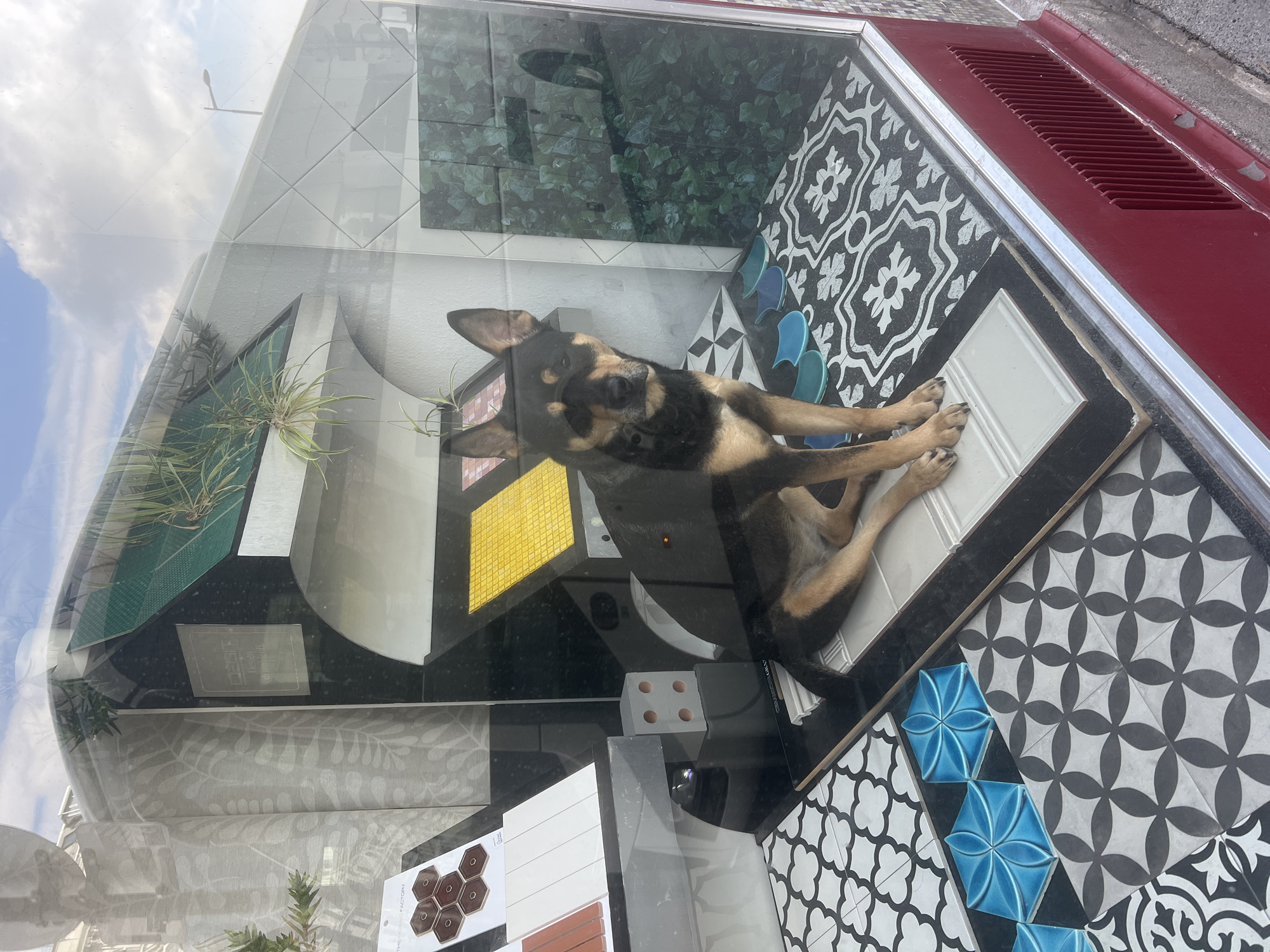- "A medium-sized German Shepherd-like dog is lying inside a building, visible through a window" by FM-g4ocG3, licensed under CC BY 4.0