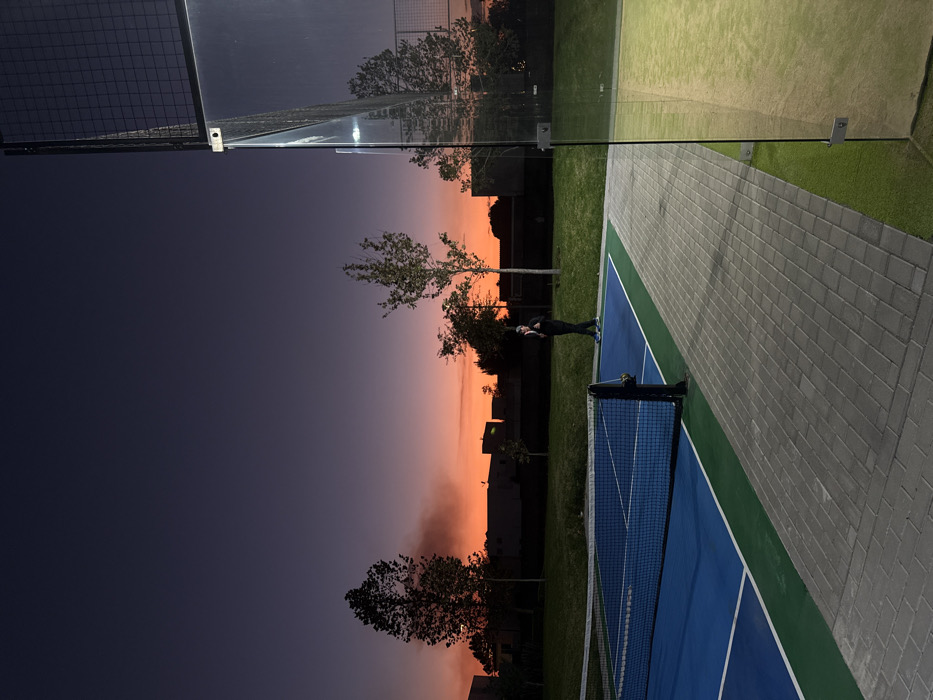 - "A tennis court sits adjacent to a glass-enclosed area, reflecting the twilight sky" by FM-osCwy1, licensed under CC BY 4.0