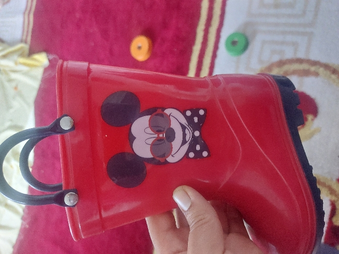 - "A left hand holds a single red child's rain boot with a black ridged sole and black carry loops, centered in the frame" by FM-gCkm43, licensed under CC BY 4.0
