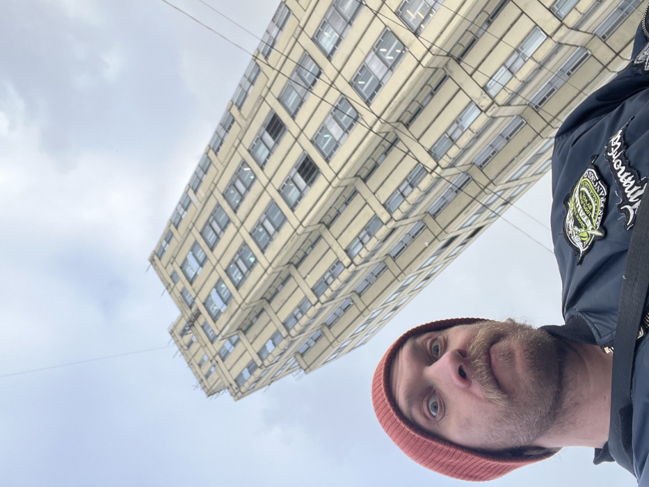 - "The image displays a low-angle perspective of a male individual in the foreground, taking a selfie with a tall, light-colored building in the background, under an overcast sky in Vsevolozhsk, Russia" by FM-6LnVy2, licensed under CC BY 4.0