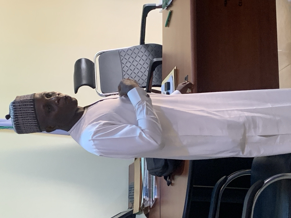 This image captures a male individual standing in an office environment within Akwanga, Nigeria