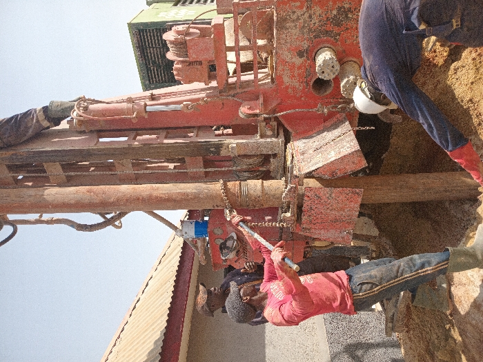 The image displays a borehole drilling operation in Rafin Par, Nigeria