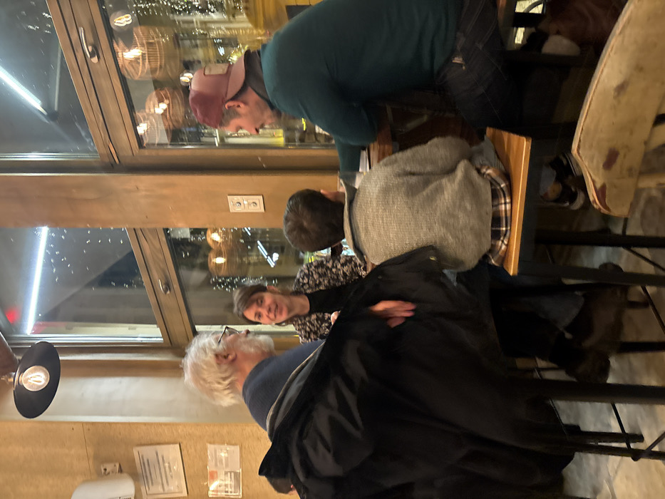- "A group of five people gathers around a table in a restaurant setting" by FM-E1hwL2, licensed under CC BY 4.0