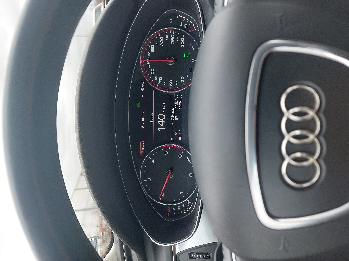 The image depicts an interior view from the driver's perspective within an Audi vehicle, located in Belozem, Bulgaria