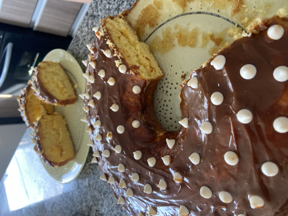 - "A ring-shaped cake with chocolate frosting is adorned with white chocolate chips" by FM-faLbl2, licensed under CC BY 4.0