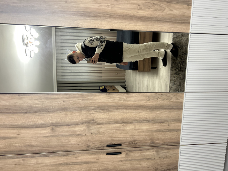 A male individual is depicted in a mirror selfie taken inside a modern bedroom, potentially located in Kardzhali, Bulgaria