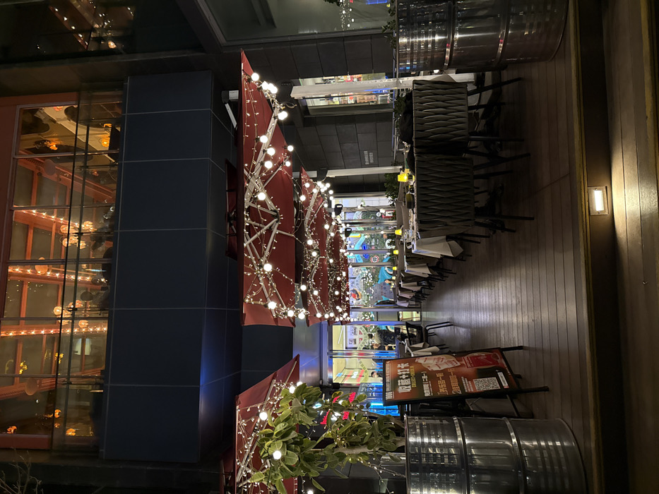 - "The image displays an evening view of an outdoor dining patio and an adjacent restaurant structure in Chaoyang District, China" by FM-Mlchq1, licensed under CC BY 4.0