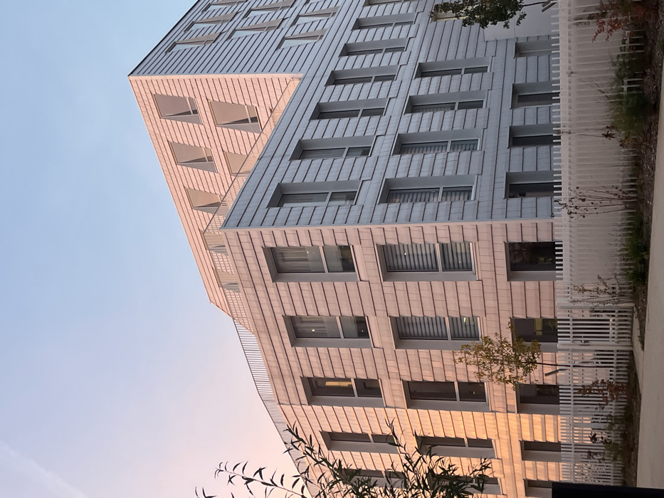 - "A modern, multi-story building in Villeneuve-d'Ascq, France, is captured during golden hour, presenting a clear sky that gradients from light blue overhead to soft pink and orange near the horizon" by FM-NQrs03, licensed under CC BY 4.0