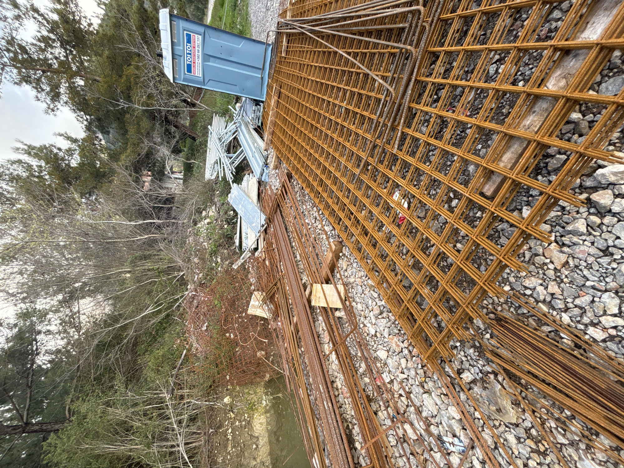 The image captures an outdoor construction material storage area in Kavač, Montenegro