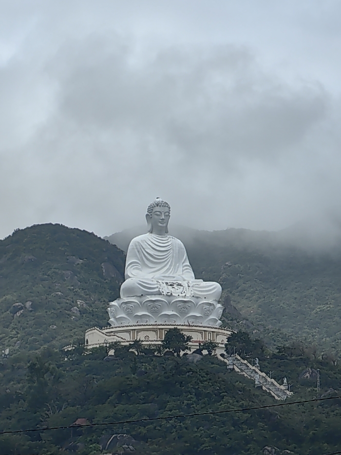 - "A large, white, seated Buddha statue, identified as the Lady Buddha (Quan Am), is prominently positioned on a verdant hillside on Son Tra Peninsula, Da Nang, Vietnam" by FM-eUL7g1, licensed under CC BY 4.0