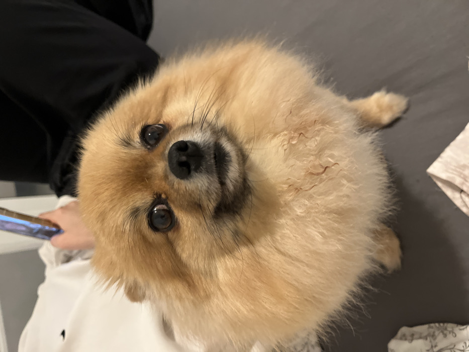 - "The image displays a light brown Pomeranian dog positioned centrally, facing forward with an alert expression" by FM-vTiXm2, licensed under CC BY 4.0