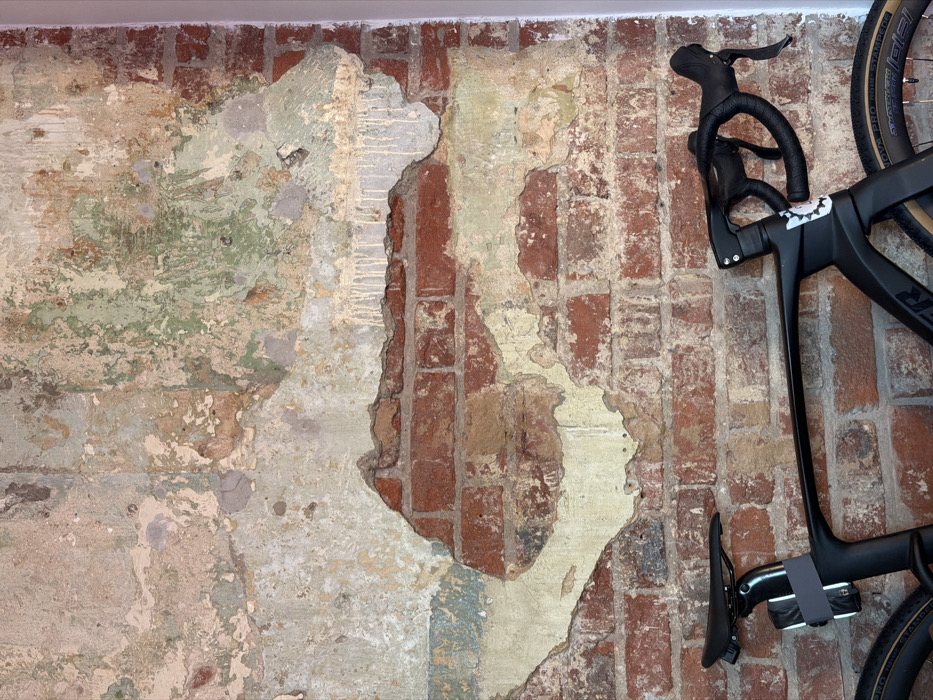 - "The scene displays a modern black road bicycle parked against an aged brick wall in the city of Sergiyev Posad, Russia" by FM-zHATA3, licensed under CC BY 4.0