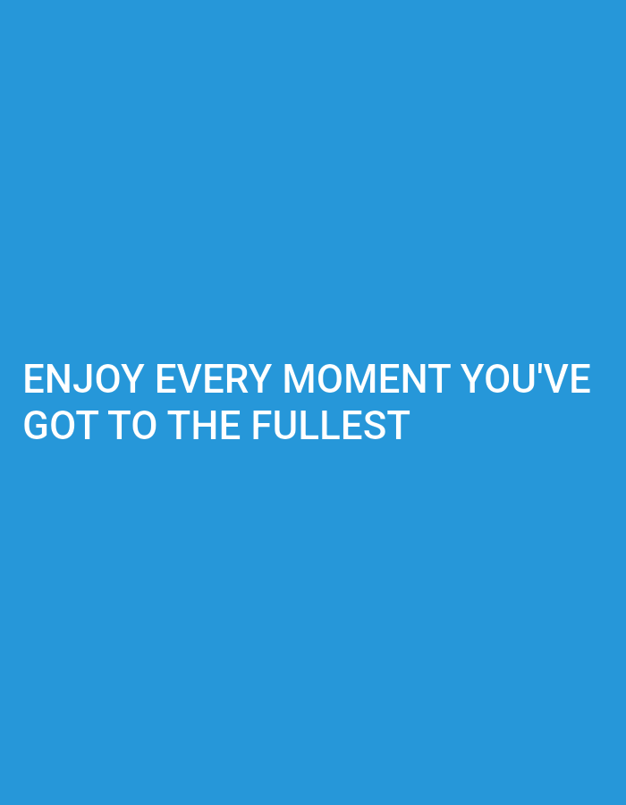 The image displays a digital graphic featuring a uniform, solid blue background. Centered horizontally and positioned in the lower mid-section of the frame is white, sans-serif text rendered in capital letters. The text reads: "ENJOY EVERY MOMENT YOU'VE GOT TO THE FULLEST". No individuals, physical objects, discernible actions, or interactions are present within the visual scene. The image provides no visual information indicating a specific physical location in the city of Obosi, Nigeria, or any other geographical area.