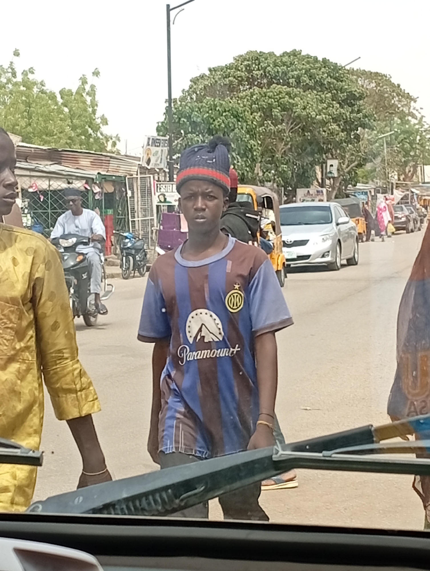 - "The image depicts a busy daytime street scene in Hotoro North, Nigeria, observed from inside a vehicle, indicated by the dashboard and windshield wiper in the lower frame" by FM-EzhfF3, licensed under CC BY 4.0