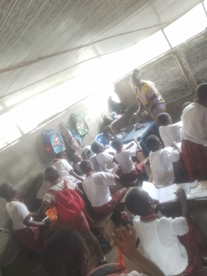 This image depicts a classroom scene in Ukwu-Abwa, Nigeria