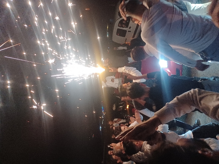 This outdoor nighttime image depicts a celebratory gathering in Dummar Municipality, Syria
