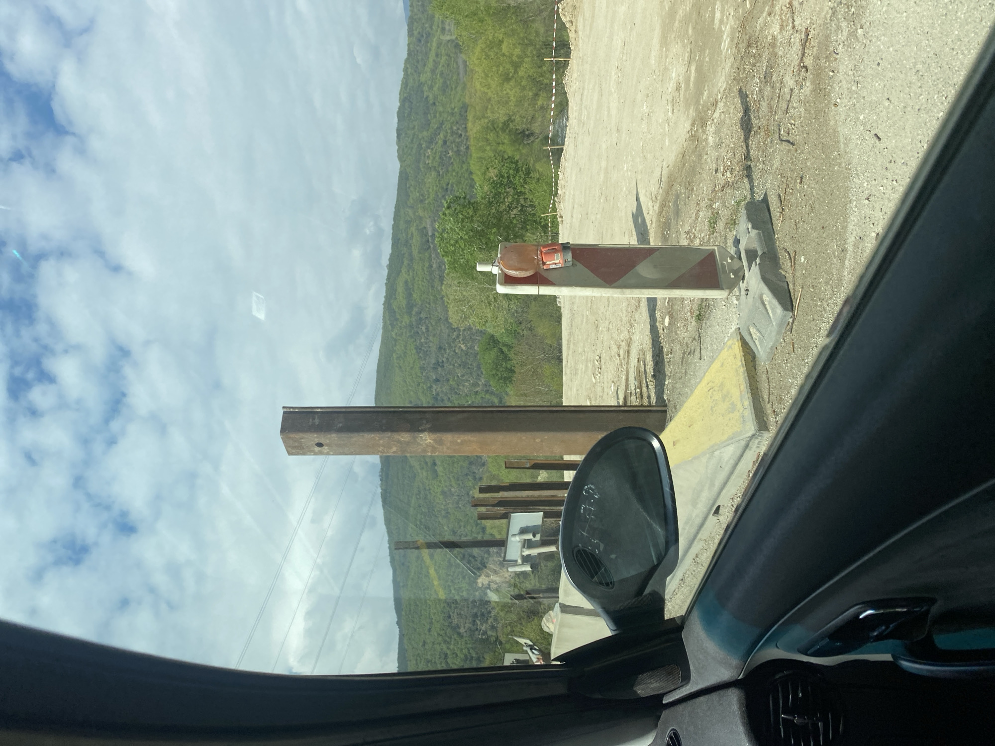 The image, taken from inside a vehicle, shows a roadside scene in what appears to be a mountainous area