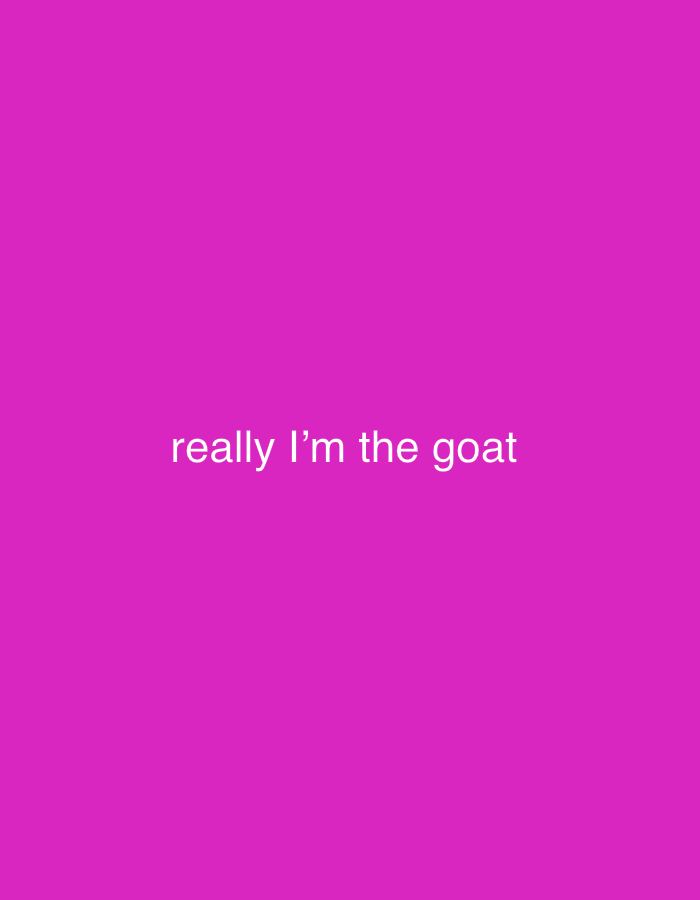 The image displays a solid magenta background with white sans-serif text centered horizontally and vertically. The text reads: "really I'm the goat". No people, physical objects, or discernible environment are present. The image does not provide any visual information to determine a specific location within the city of Newark, United States, or any other real-world setting.