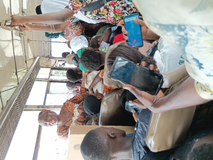 The scene captures the crowded interior of a public transit vehicle in Shangisha, Nigeria, during daylight hours