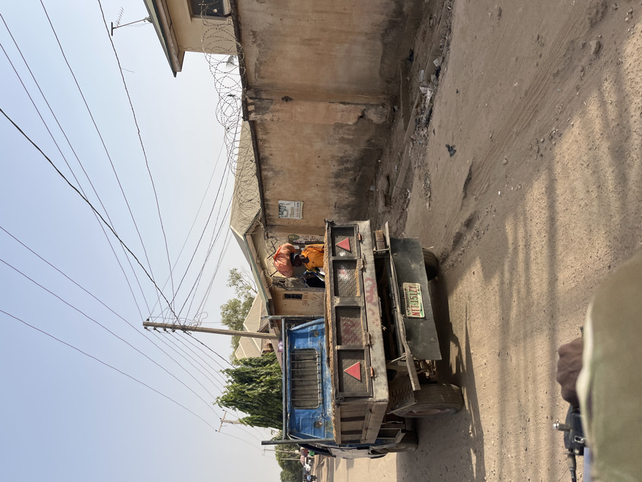 This image depicts a daytime scene on an unpaved dirt road in Katambe, Nigeria