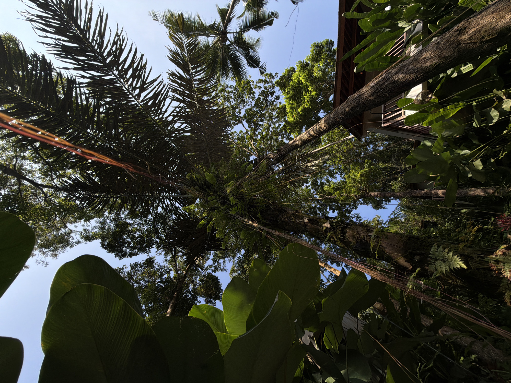 This is a low-angle shot of a lush, tropical environment in Kedewatan, Indonesia
