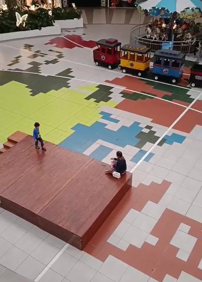 - "A child runs on a small stage in a shopping mall" by FM-9lUE23, licensed under CC BY 4.0