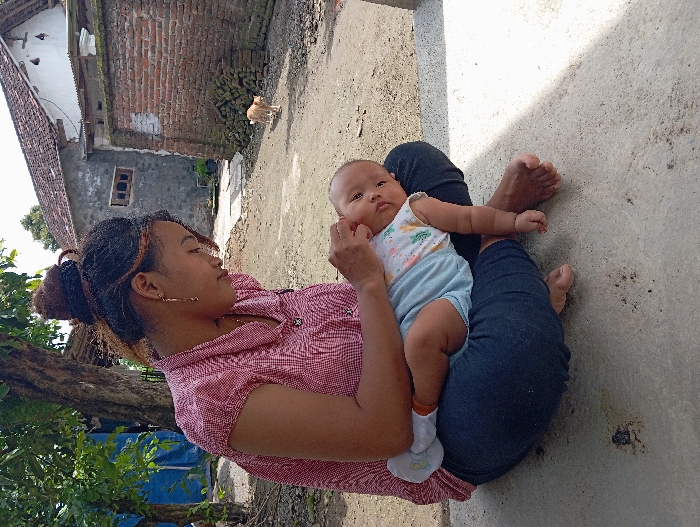 - "An outdoor scene in Waung, Indonesia, depicts an adult female seated on a concrete surface, holding an infant" by FM-TnUEx2, licensed under CC BY 4.0