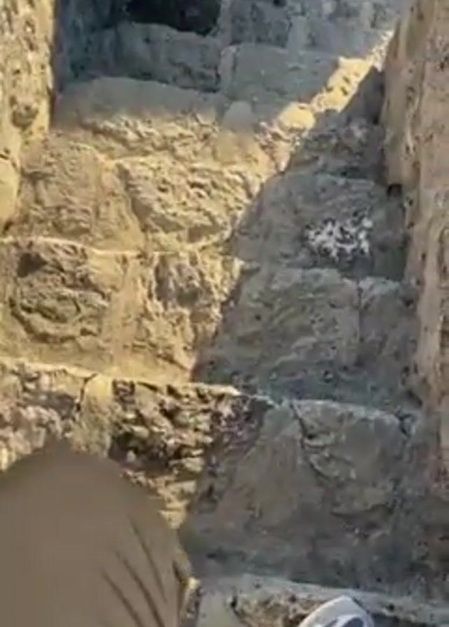 person climbing up a set of worn, stone stairs