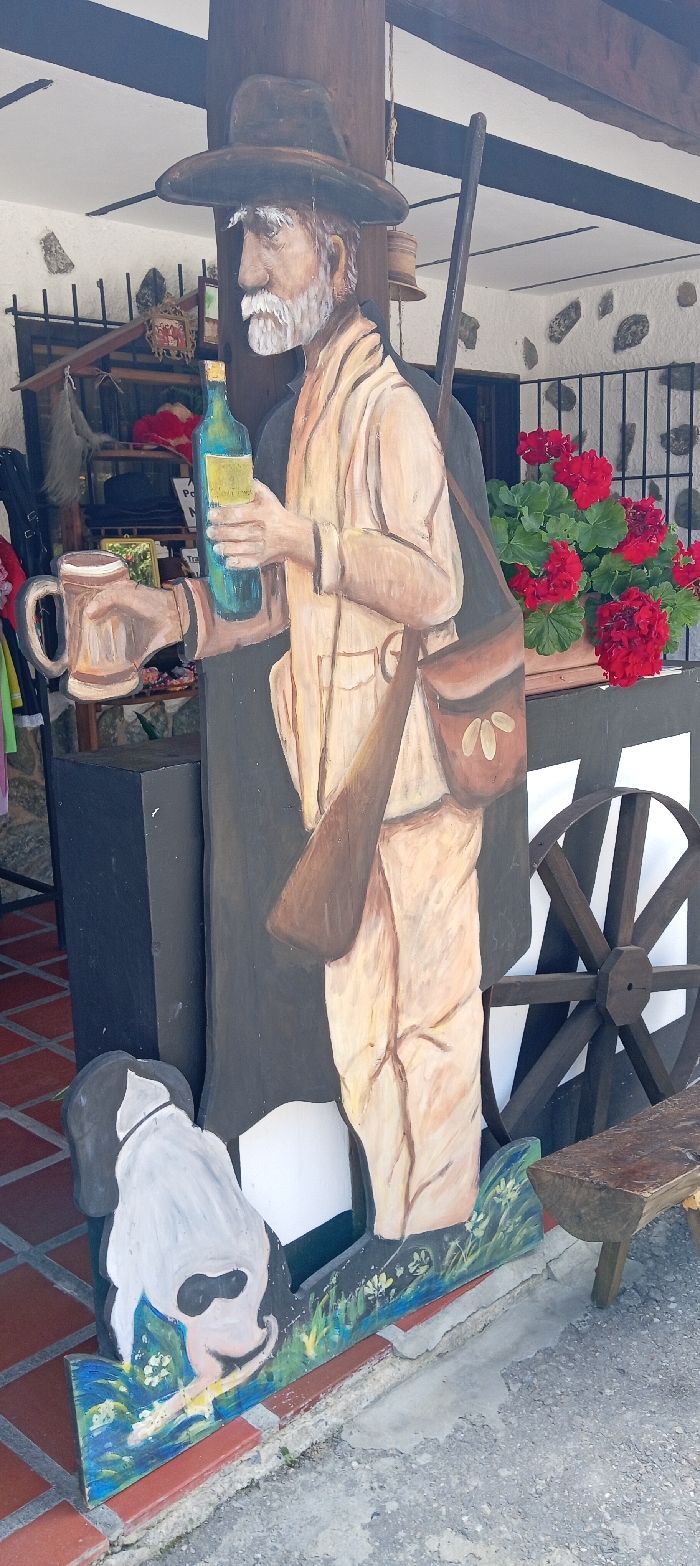 - "The image displays an outdoor scene in Colonia Tovar, Venezuela, centered on a large, two-dimensional wooden cutout figure of an elderly man" by FM-DhFfC2, licensed under CC BY 4.0