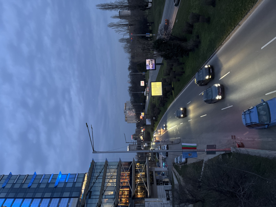 - "The image depicts an elevated view of a multi-lane urban highway at dusk in Sofia, Bulgaria, specifically looking east along Tsarigradsko Shose from near the Capital Fort building" by FM-ETEXP2, licensed under CC BY 4.0