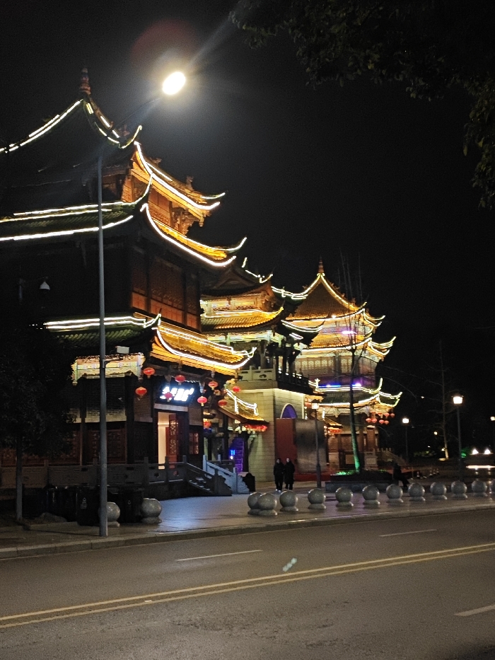 - "The image depicts a nighttime urban scene in Bishan, China, showcasing a series of multi-story buildings constructed in a traditional Chinese architectural style" by FM-TY87o1, licensed under CC BY 4.0