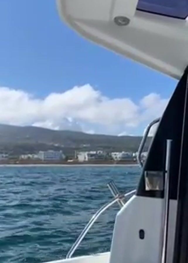 motorboat sailing on a sunny day with a clear blue sky and some clouds