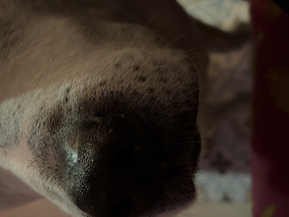 - "The image displays a forensic close-up of a dog's dark, wet nose and the surrounding light-colored muzzle, captured in an indoor setting within the city of Nirit, Israel" by FM-CrG833, licensed under CC BY 4.0